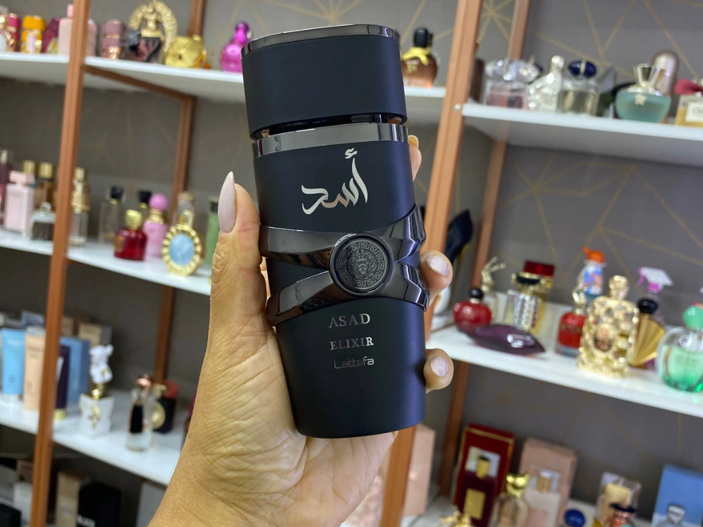 Asad Elixir de Lattafa Perfumes é um perfume Oriental Masculino. Esta é uma nova fragrância. Asad Elixir foi lançada em 2025. As notas de topo são: Pimenta Rosa, Açafrão e Toranja. As notas de coração são: Tabaco, Cedro e Baunilha. As notas de fundo são: Patchouli, Olíbano, Âmbar Claro e Cashmeran.