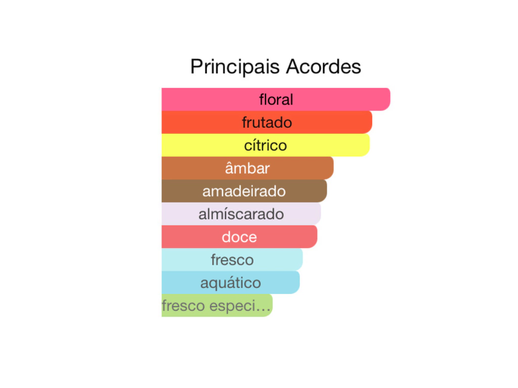 A fragrância se abre com um frescor vibrante da Pera, Bergamota e Laranja Amarga, proporcionando uma entrada frutada e cítrica que desperta os sentidos. No coração, o bouquet floral ganha profundidade e sofisticação com notas de Frésia, Pomarose e a exclusiva essência Mahonial®, criando uma aura delicada e envolvente.