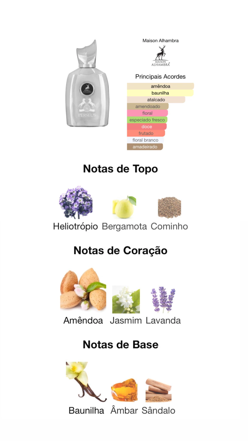 A base é onde Perseus revela seu caráter profundo e envolvente, com notas quentes e acolhedoras de baunilha, âmbar e sândalo, garantindo uma fixação duradoura e um rastro inesquecível.