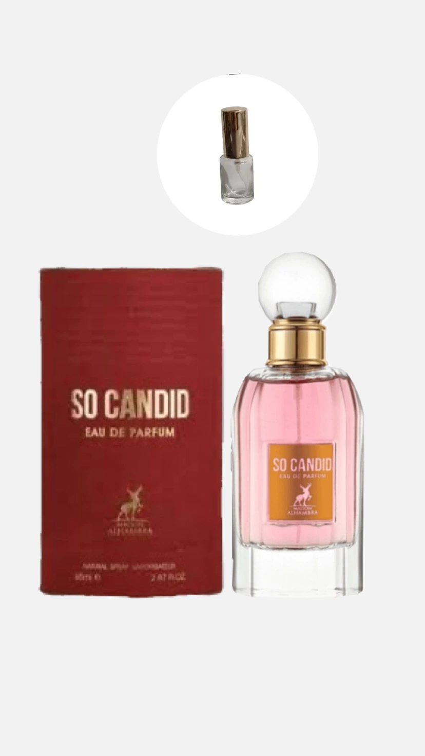 So Candid de Maison Alhambra é um perfume Floral Feminino. So Candid foi lançada em 2022. A nota de topo é Flor de Laranjeira. As notas de coração são: Tuberosa e Jasmim. A nota de fundo é Leite.